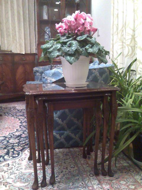 我が家のお父さんのご実家は、昔、イギリスに駐在員として住んでいたこともあり、家の中がイギリスの家具であふれております。 最近、アンティークで色んな家具を見ている私としては、要チエック!です。 ネストテーブルがありました。20数年前に購入したものだそうですが、色もなかなか素敵です。 飾り棚もなかなかいい味を出しております。中には、たくさんの小さな置物が飾ってあります。 コレは食器棚です。もちろん鍵もかかります。ティーカップは1客ずつ違うもので揃えております。 毎回、どの柄に当たるのか楽しみです。 そして、コレも、ネストテーブルです。ハロッズにて昨年購入したものだそうです。 コレは、暖炉を再現したものです。電源を入れると暖炉の火が燃えているように光ります。 日本に居ながら、英国を味わえるお家でした。 上の 「海外ブログ」と「FC2」を、「ぽちっ」と押していただくと、この「ロンドン生活withキッズ」にポイントが入ります!! ご協力いただけると嬉しいです。よろしくおねがいしま~す。 PR
