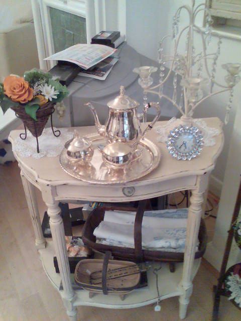 置いてあるもの一つ一つが可愛かったのでご紹介しま~す。 壁際に何気なく飾ってあった棚です。 とてもかわいいのですが、センスの無い私が真似するとかなり危険です! 飾り棚もいい感じでした。スージークーパーらしき食器も見えます。 よくアンティークマーケットで売っている木の3段の棚です。 こうやって花を飾るとかわいい ![]() この銀食器のセットもお金持ちそうでした。 ![]() とても、お勉強になりましたーっ。 パソコンの調子が悪くて、コメントのお返事など遅くなりそうです。 ごめんなさい!! 密かにブログランキングを楽しみにしております。 下の「海外ブログ」、「FC2 BlogRanking」をクリックしていただけると票が入ります。 ご協力お願いします。