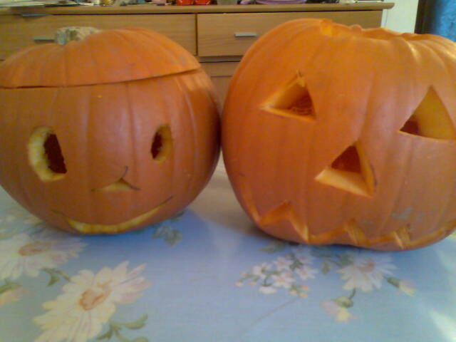 イギリスにせっかく住んでいるので、オレンジのかぼちゃでジャコランタン(かぼちゃのおばけ)を作ろうと思い かぼちゃを購入。 2人の子供のために2つ買いました。 下の子供は、「ジャコランタンつくるよ~!!」という言葉に大興奮!! どうやら、テレビのキャラクターの「グーチョコランタン」と勘違いしたようです。 かぼちゃをスプーンでくりぬく子供たち。 日本のかぼちゃというと切り抜くが大変ですが、 このかぼちゃは、スイカのような感じで 簡単に切りとれました。 右が、7歳のジャコランタン 左が、3歳のジャコランタン です。 夜、ろうそくの火をつけてみると、なかなかムード満点でした。 明日がたのしみで~す。 密かにブログランキングを楽しみにしております。 下の「海外ブログ」、「FC2 BlogRanking」をクリックしていただけると票が入ります。 ご協力お願いします。